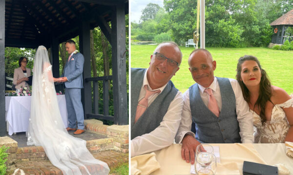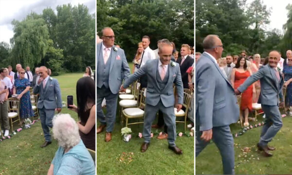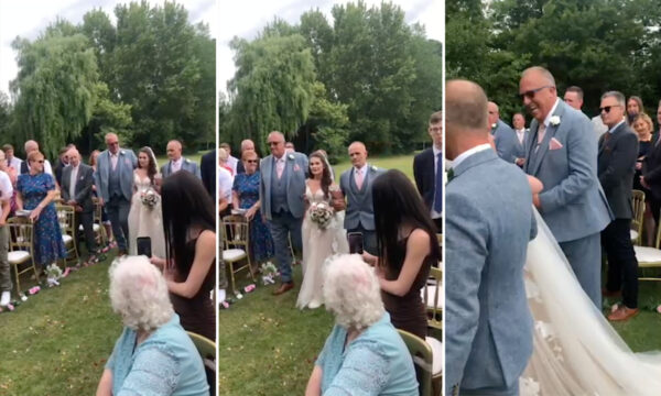 Un père britannique a saisi la main du beau-père de sa fille le jour de son mariage et l’a amené pour qu’ils puissent tous deux l’accompagner à l’autel.